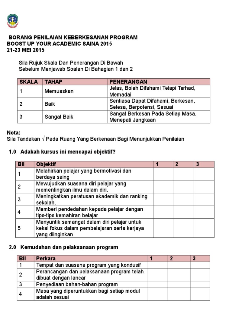 Borang Penilaian Keberkesanan Program Motivasi Pdf